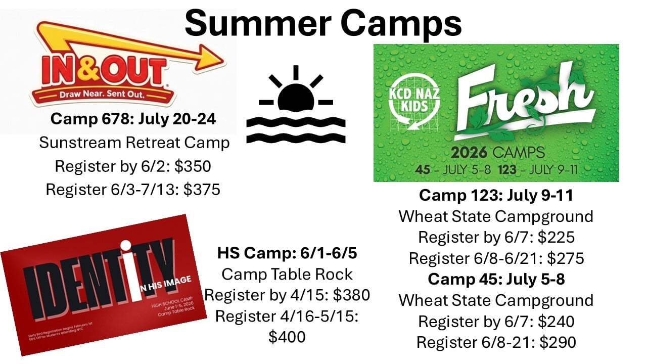 Camp 123 will be held July 9-11 at Wheat State Campground in Augusta, KS. Early bird registration is through 6/7 and is $225. Registration 6/8-6/21 is $275. For additional information and to register, use the link below: